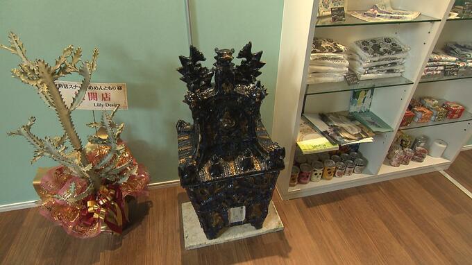 店の主、村田ますみさん。去年2月「めめんともり」の1号店を東京に開店。20年前に亡き母の生前の希望で海洋散骨を行い、その地が沖縄だったことから、沖縄には特別な縁を感じています。