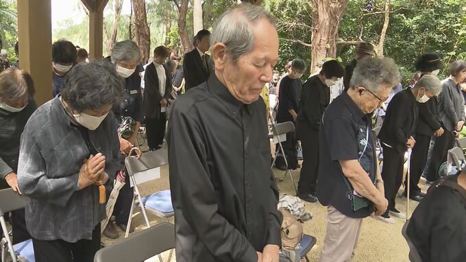 慰霊祭には、遺族や集団自決を生き延びた人たちも集まり、犠牲者に鎮魂の祈りをささげました。