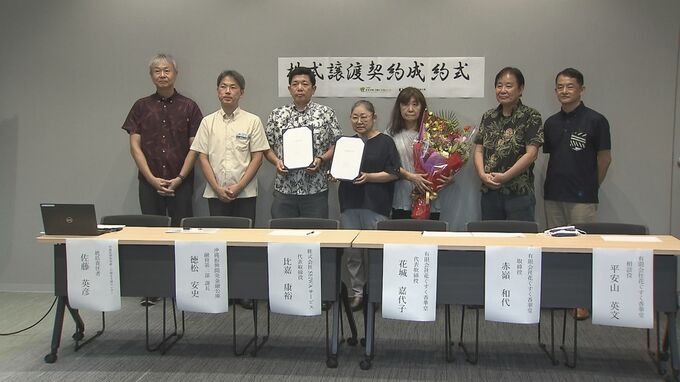 沖縄料理のお惣菜や弁当販売で知られる「花ぐすく香華堂」。後継者不在で事業継続が危ぶまれていましたが、事業を引き継ぐ企業が見つかり、調印式が行われました。