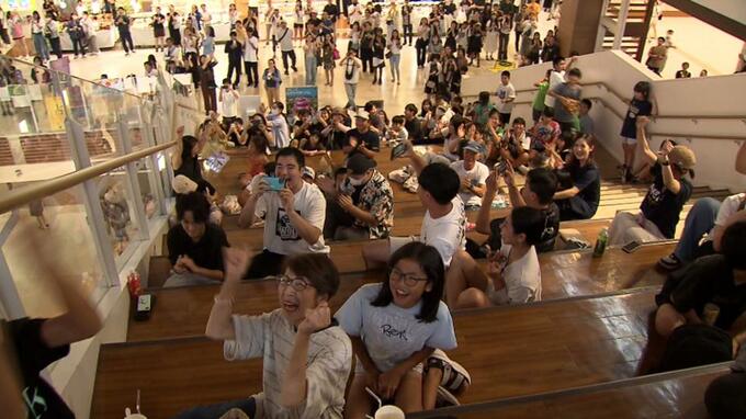 県内では大型商業施設に設けられたパブリックビューイングに人が詰めかけ、那覇市の公設市場でも仕事が手につかない人たちが野球中継を食い入るようにテレビ画面を見つめた。