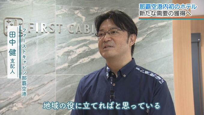 ファーストキャビンの開業は空港利用者の利便性向上につながると、ホテルを誘致した那覇空港ビルディングの照屋義実社長は話します。