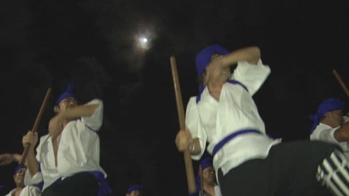 中秋の名月が夜空高く上った6日、午後9時ごろから始まった宮古島市「野原のマストリャー」は、人頭税の時代に税として納める穀物を升(ます)で計っていた場所を表わす「マスムトゥ」が由来で、無事に税を納め終えた祝いとして始まったのが起源とされています。
