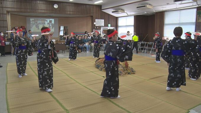 300年以上の歴史があるとされる知花のウスデークは中央に置いた獅子の周りで円を描くようにゆったりと踊るのが特徴で、11人の女性が扇子や四つ竹を手に舞を奉納しました。