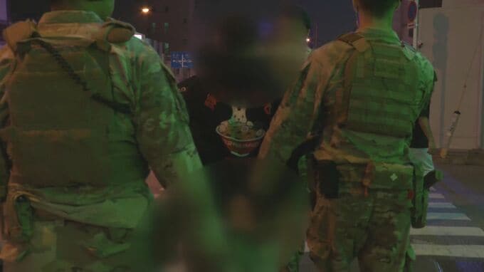 「午前1時前です。規律に違反したとみられる米兵を憲兵隊が連行しています」
