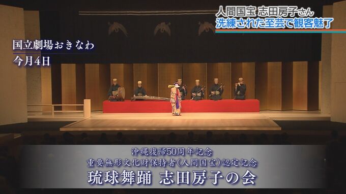 今月4日、沖縄復帰50年と、志田房子さんの重要無形文化財保持者(人間国宝)の認定を記念した舞踊公演「琉球舞踊志田房子の会」が国立劇場おきなわで開催されました。