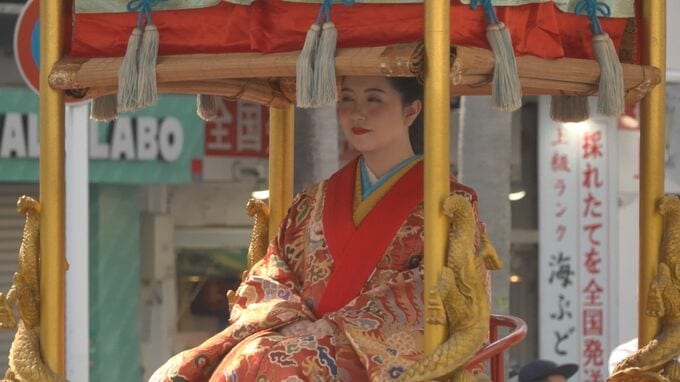 首里城復興祭が行われている那覇市で2日、琉球王国時代の歴史文化を再現した絵巻行列が華やかに行われました。