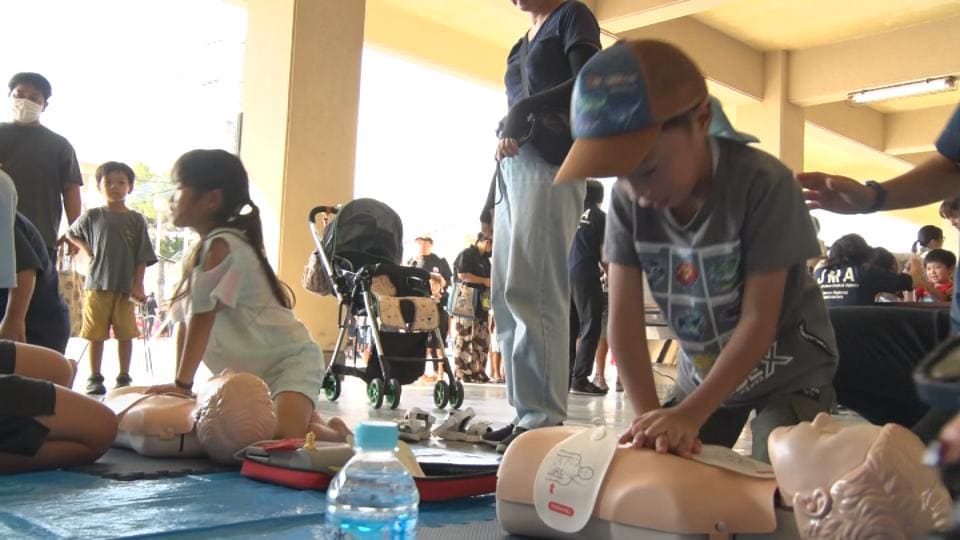 宮古島市で防災フェアが開かれ、子どもたちが放水活動などに挑戦しました。