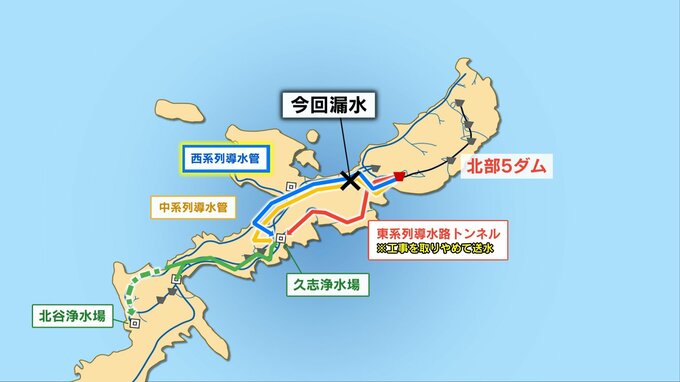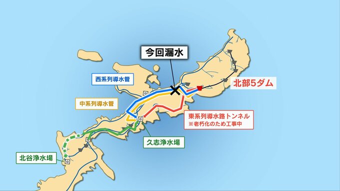 本島北部の水源から水を運ぶ導水管は3つあります。今回破損したのは、本土復帰より前の1967年に敷かれた「中系列導水管」と呼ばれるものです。
