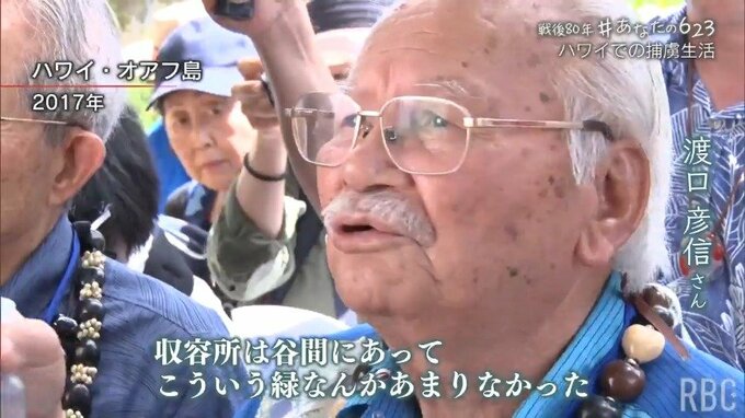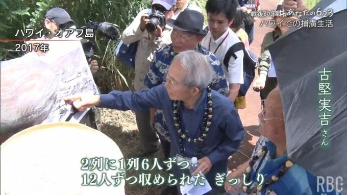 2017年、戦後72年を経て、渡口さんは自身が過ごした収容所の跡地を訪れました。元衆議院議員の古堅実吉さんも、当時捕虜として最年少の15歳でハワイに送られました。