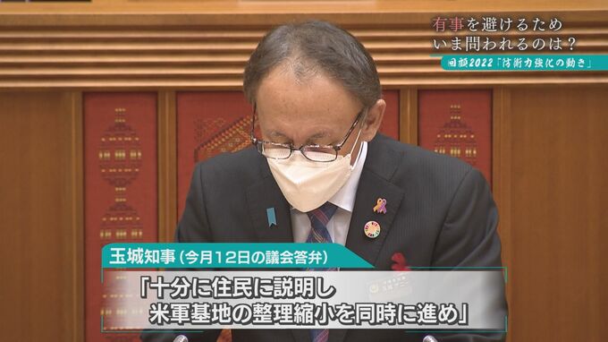 自衛隊の防衛力強化をめぐり、玉城知事は「十分に住民に説明し、アメリカ軍基地の整理縮小を同時に進め、結果的に沖縄の基地負担軽減につながれば、その方向性は認められるのではないか」との認識を示しています。