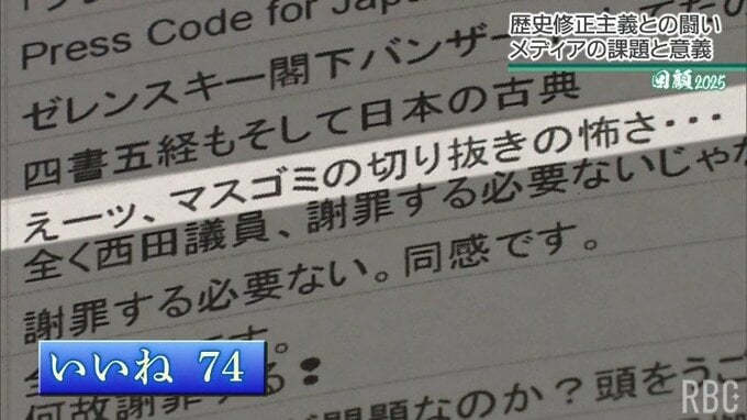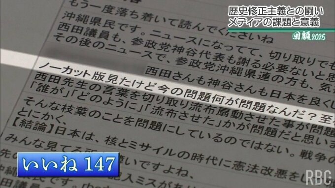 「私の意図とは無関係に“切り取られた記事”が誤解を生んでいる」という西田議員の主張に対し、RBCでは、シンポジウムのノーカット版動画をYouTubeに配信しますが、900件以上の賛否のコメントの中で、西田議員を擁護する主張には100以上の「いいね」がついたコメントもありました。