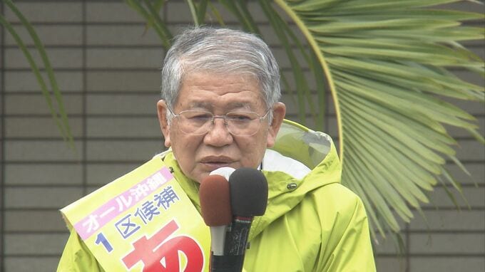 共産党の前職赤嶺政賢さんは高市政権と対峙できるのは「オール沖縄」だとして、米軍基地問題の解決や消費税の廃止などを主張しました。