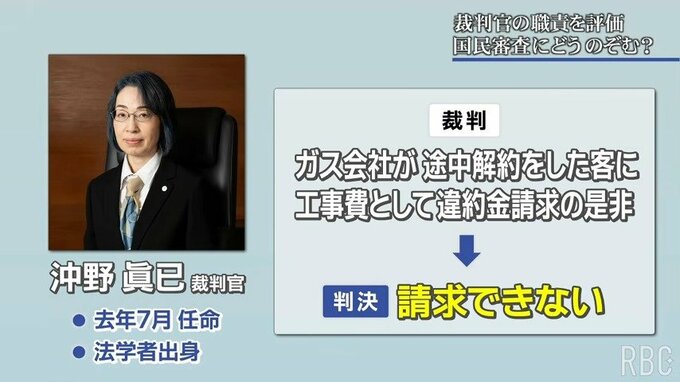 去年7月に任命された沖野眞巳裁判官は、東京大学の法学部長を務めた法律学者です。去年、ガス会社が途中解約しようとした顧客に対し配管の工事費を名目に高額な違約金を請求したことの是非を問う裁判で、この違約金は請求できないという消費者の権利を保護する判決を出しました。