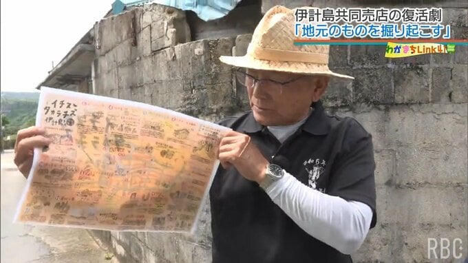 歴史的な建造物から近代的なアートまで、見どころが多い伊計島。共同売店が島の活性化への核となると話します。