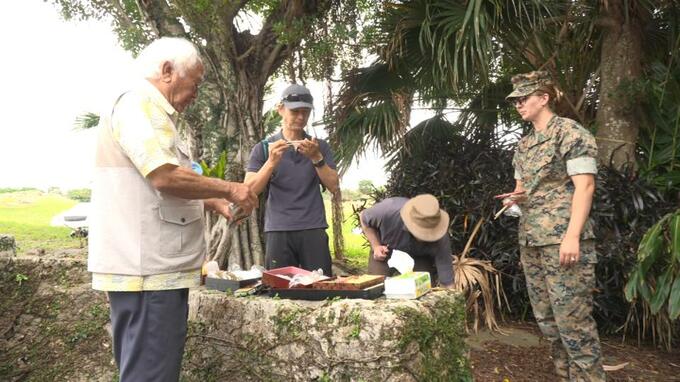 「うちのご先祖は泡盛が好きでしたから。また子どもたちにも戦争で亡くなった方、お菓子持ってきたりして」「私ももう88歳で。これからあと20年だ30年だと言ったらちょっと危ないかもしれませんが」「10年と言わず5年以内に返還していただけたら、とてもこの年では嬉しいです」「88歳と言ったらもう明日向こう行ってもおかしくないからね。そういうことを申し上げながら、また来年会いましょうと(伝えた)」