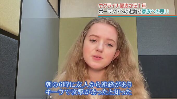 ウクライナ避難民 アナスタシアさん「朝の6時に友達から連絡がありキーウで攻撃があったと知った。私は混乱してすぐに荷物をまとめた。母と一緒にその日のうちでポーランドに逃げて、それからウクライナには戻っていない」