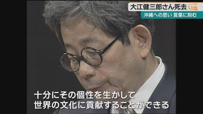 今月3日、88歳で亡くなったノーベル賞作家の大江健三郎(おおえ けんざぶろう)さん。『沖縄ノート』を執筆し、戦後の日本のあり方を問い続けてきました。沖縄への思いが綴られた大江さんの『言葉』を振り返ります。大江健三郎さん。戦後の日本を代表する文学者は、創作活動を通して沖縄を見つめてきました。