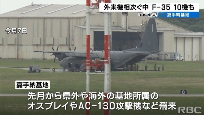 ステルス艦・ステルス機・空中指揮機・空母艦載機… 未だ見えない“負担軽減” 沖縄の米軍基地のいま 台湾、ウクライナ、北朝鮮 冷戦後も安全保障環境は厳しく To view this video please enable JavaScript, and consider upgrading to a web browser that supports HTML5 video 2022年5月15日(日) 15:52 国内 基地問題 5月 15日で復帰50年を迎えた沖縄。県民が基地負担の軽減を訴えてきた50年でもありました。しかし深夜にも及ぶ訓練など基地周辺では騒音に苛まれている状況は変わっていません。 台湾海峡、ウクライナ情勢など国際情勢の緊迫を受けてか、今年に入り米軍嘉手納基地では外来機による訓練が増加しています。RBCのニュース映像から振り返ります。 1月 嘉手納基地に相次いで飛来した岩国基地所属のF-35ライトニング Ⅱ 2月嘉手納基地に飛来した海軍仕様のCMV-22オスプレイ 4月に嘉手納基地に飛来した岩国基地所属とみられるF/A-18スーパーホーネット 4月嘉手納基地 アラスカ州軍機が相次ぎ飛来 4月嘉手納基地 4月嘉手納基地 AC-130 地上攻撃のための大型砲などを備える