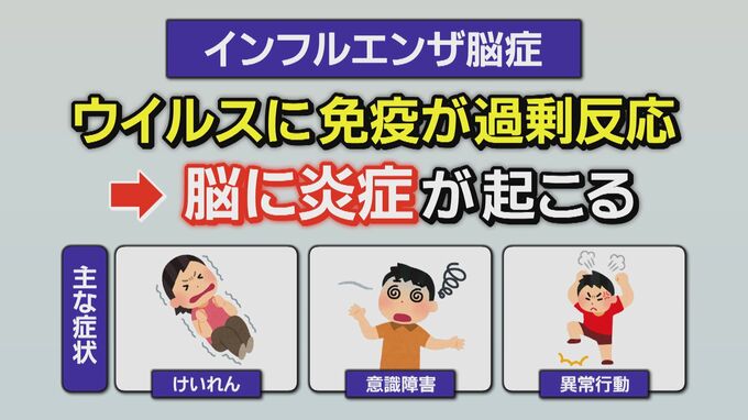 厚労省の調査では2019年にインフルエンザ脳症が確認されたのは254例あり、そのうち10歳未満の子どもが71%。毎年全国で100人から300人程度が発症し、このうち死に至るのはおよそ8から9%ということです。