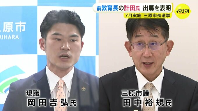 三原市長選挙には、計田氏のほか、現職の岡田吉弘氏と市議の田中裕規氏が立候補を表明しています。