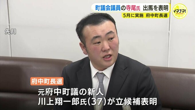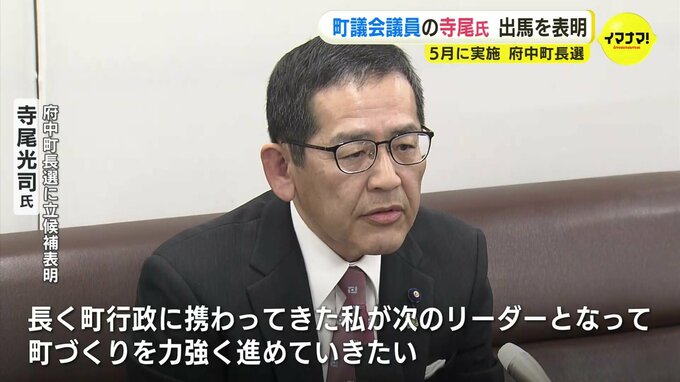 一方、5月に予定されている府中町長選挙には、新人で府中町議会議員の寺尾光司氏が無所属での立候補を表明しました。寺尾氏は、府中町出身の65歳。府中町職員を務め、2020年9月の府中町議会議員選挙に立候補して初当選しました。