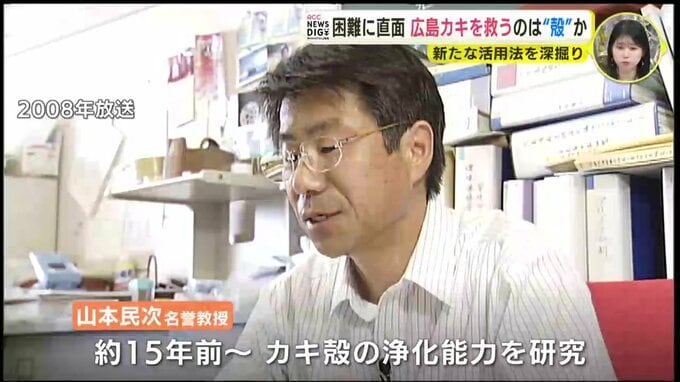 山本名誉教授は、15年ほど前からカキ殻の浄化能力に注目した、さまざまな研究を進めています。