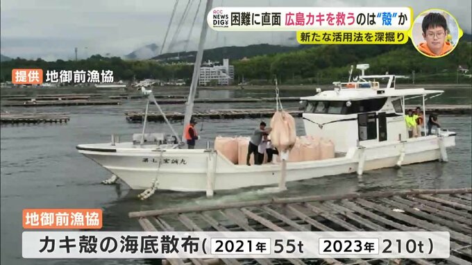 廿日市市の地御前漁協は、3年前からカキ殻の海底散布に取り組んでいます。