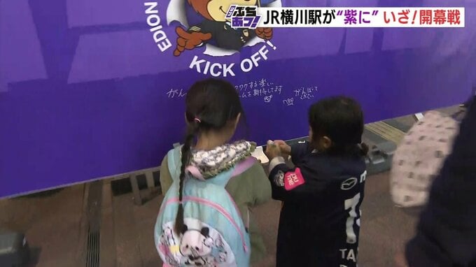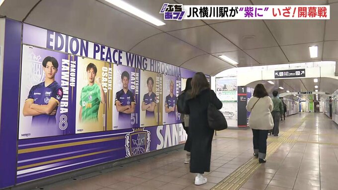 広島市西区のJR横川駅では開幕戦に合わせて、駅構内が紫に染まりました。通路や改札に選手の写真やエンブレムが飾られたほか、応援メッセージボードなども設置されました。