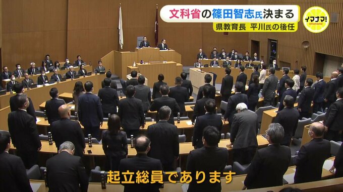 県議会では、3月末で任期満了となる平川理恵教育長の後任に、篠田氏を起用する人事案が提案されました。採決の結果、人事案は全会一致で可決されました。