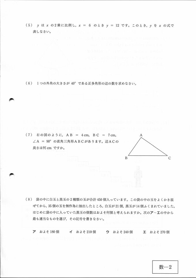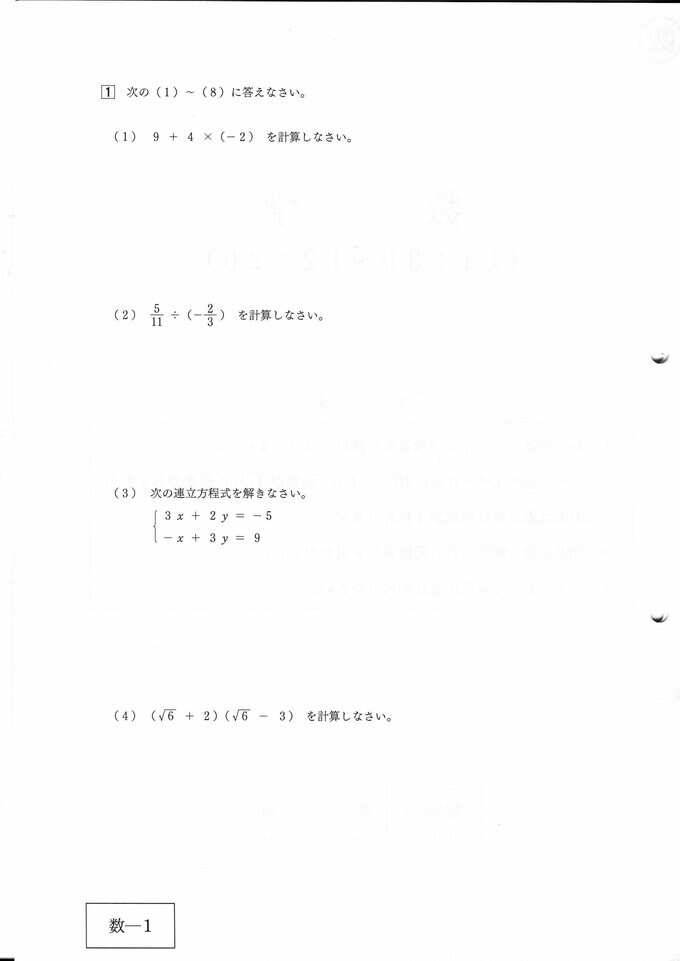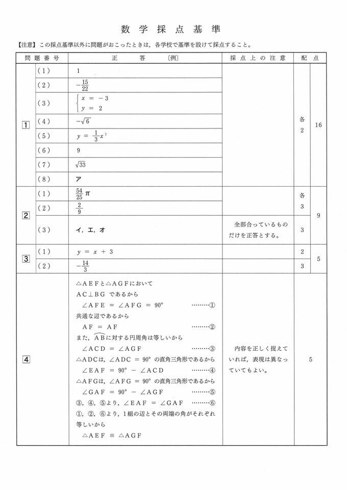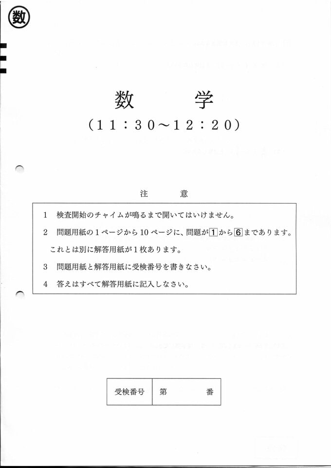 【問題・解答速報】広島県公立高校入試2024 問題詳細&解答採点基準(国語・社会・数学・理科・英語)【2024年度(令和6年度)一次選抜】 2024年2月27日(火) 18:55 国内 数学 問題用紙 解答用紙 解答(数学採点基準)
