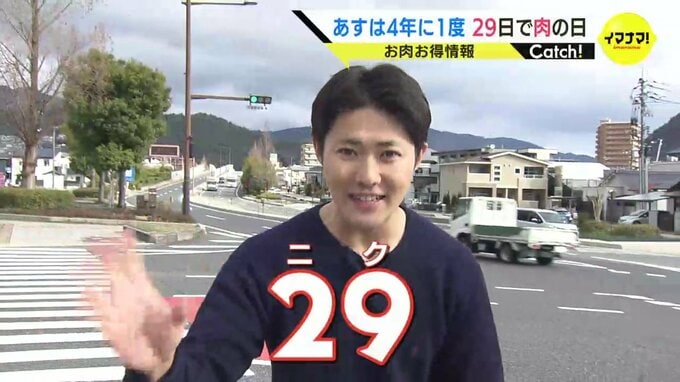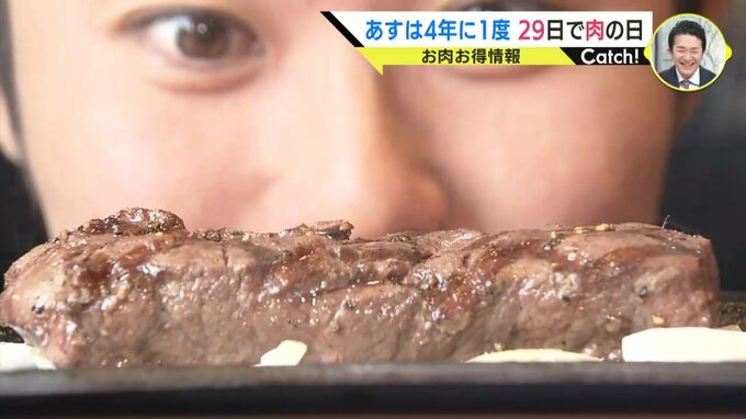 「あすは2月29日。ニク、そう肉の日なんです。ことしは2月の9日。そして、うるう年の関係で2月29日と、1か月の中に肉の日が2回あるんです。わたくし、9月29日生まれ。肉を愛し、肉に愛された男、小宅が肉を食べ尽くします」