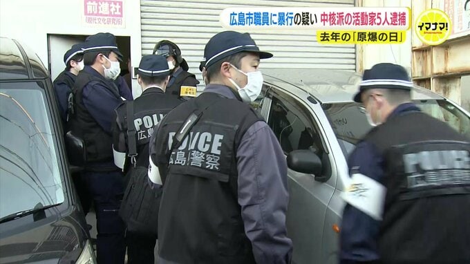 「原爆の日」に広島市職員に暴行か 中核派の活動家5人を逮捕 前進社の全拠点など全国8都府県14か所で家宅捜索 実行委員会は「不当な弾圧」と主張【動画ニュース】 2024年2月28日(水) 19:45 国内 去年の「原爆の日」に広島市職員に集団で暴行を加えたとして、警察は中核派の活動家5人を逮捕しました。「原爆の日」の式典前後にはさまざまな団体がデモを行い、騒音などが課題となっていました。去年8月6日の…