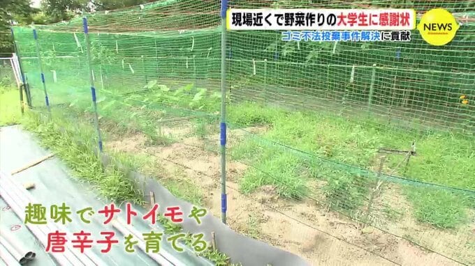 ゴミの不法投棄事件の解決に貢献したとして、警察から感謝状です。現場近くの祖父の畑で野菜作りをしていた大学生…。解決の決め手は?
