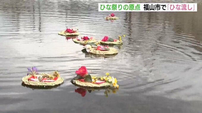 桃の節句の3日、広島県福山市では、ひな流しが行われ、家族で子どもの健康を願いました。