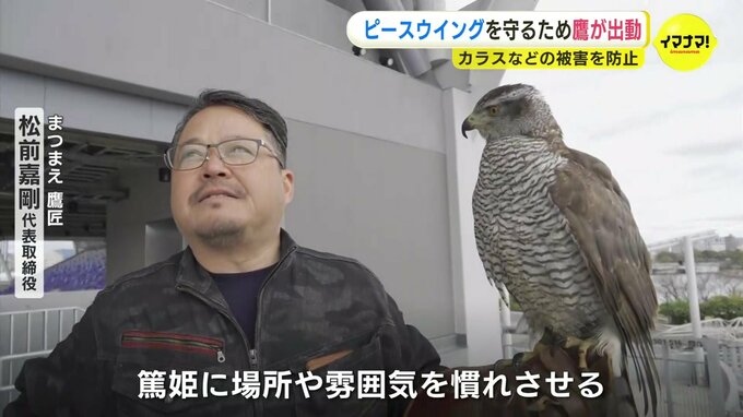 新サッカースタジアム「エディオンピースウイング広島」で、タカを使った害鳥駆除の取り組みが始まりました。