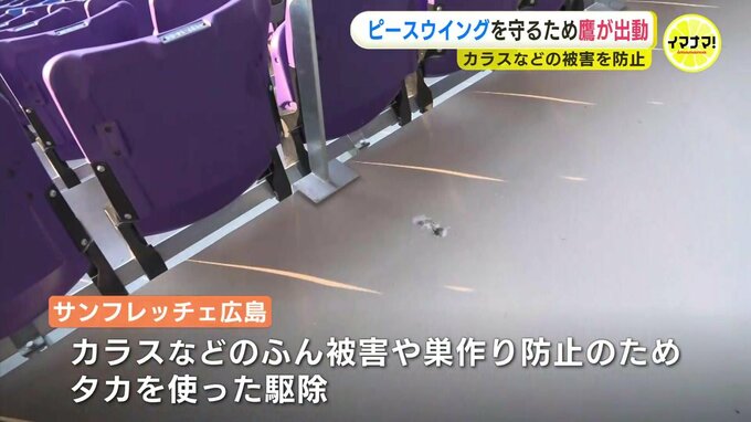 サンフレッチェは、カラスなどの糞による被害や巣作りを防ぐため、スタジアムでタカを使った駆除を始めます。