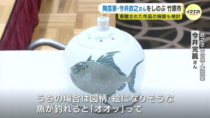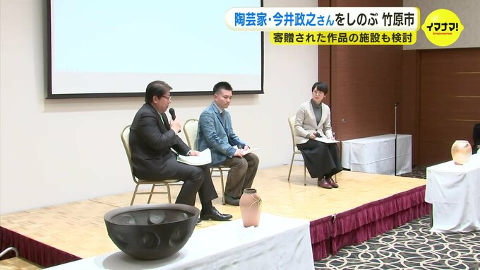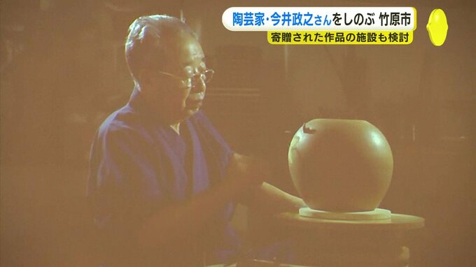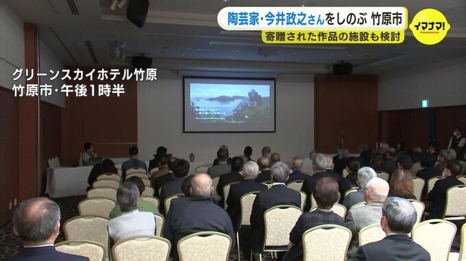 追悼行事は、2023年に92歳で亡くなった陶芸家今井政之さんを偲び、その功績を振り返るために竹原市が開きました。