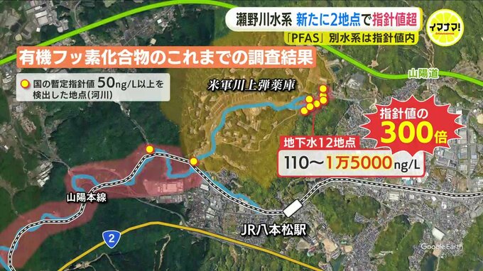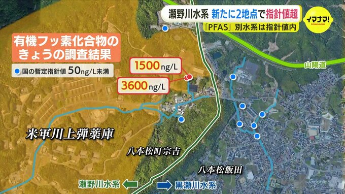 東広島市によりますと、八本松町宗吉にある瀬野川の最上流となる河川の2地点で、国の暫定指針値を超えたPFASが検出されたということです。