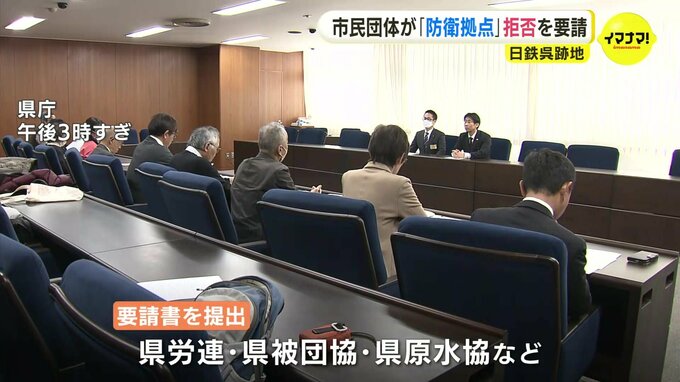 防衛省が日本製鉄呉地区跡地に「多機能な複合防衛拠点」を整備したい考えを表明したことについて、市民団体が県に対し、防衛省の意向を拒否するよう要請しました。