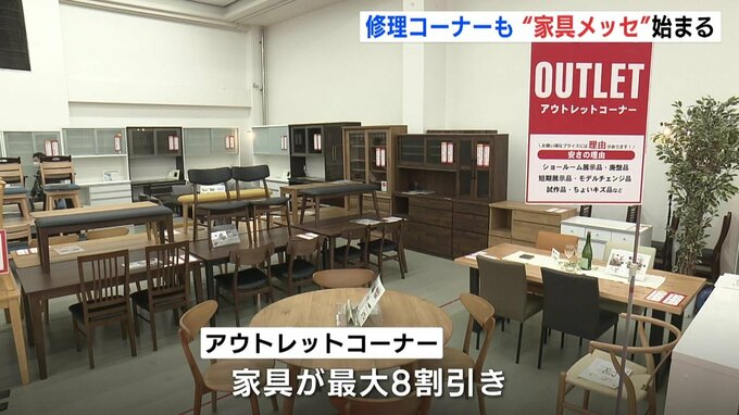 また、アウトレットコーナーでは、最大8割引きで家具が販売されています。