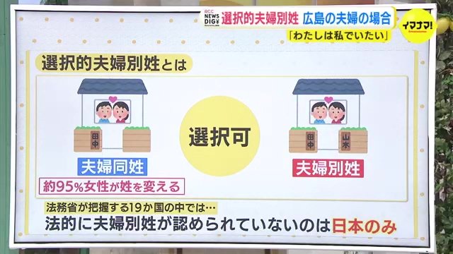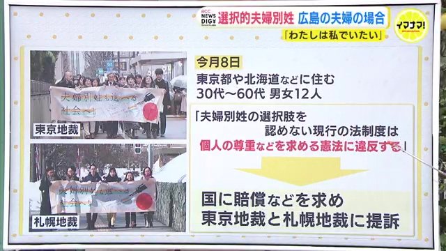 「結婚してもお互いにそれぞれの姓を名乗りたい」。そんな思いを持った東京都や北海道などに住む男女12人が国を提訴しました。「夫婦別姓の選択肢を認めない今の法制度は憲法違反」だと訴えています。広島でも長年、実現を求める人たちがいます。