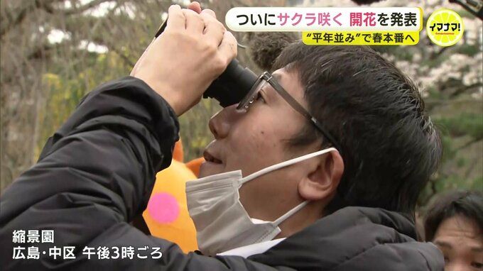 「この年で(開花発表を)初めて見たうれしい。今日満開だ思って計画していたので少し残念だったけど、開花宣言に出会えたのすごい」