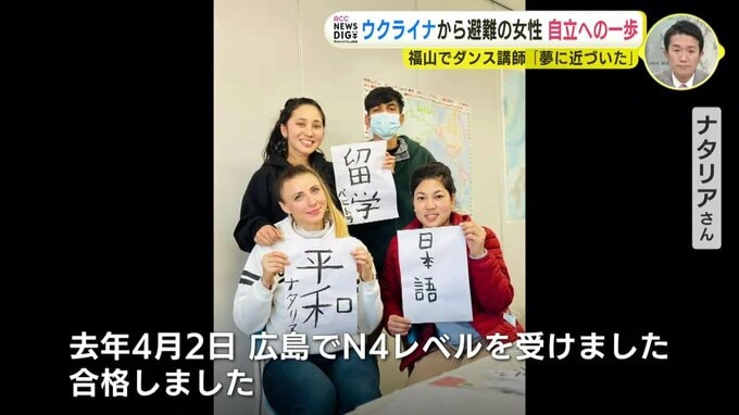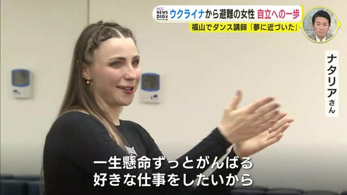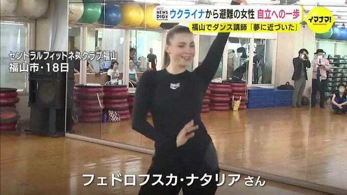 2年前、ウクライナから福山市へ避難してきたフェドロフスカ・ナタリアさんです。戦争が起きるまで、プロのダンサーとして活躍していました。避難先となった日本で、好きなダンスを踊ることを夢見てきたナタリアさん…。