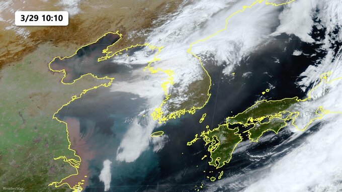 地上の観測では28日は中国大陸で非常に濃い黄砂が観測されていたほか、29日には朝鮮半島で黄砂を観測しています。