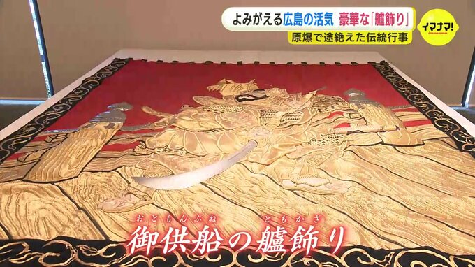 よみがえる広島の活気 原爆で途絶えた伝統行事伝える 「御供船の艫飾り」見つかる 2024年3月29日(金) 19:07 国内 話題・グルメ 江戸時代から戦前まで続いていました。活気あふれる広島の風習を伝える貴重な史料が見つかりました。「御供船の艫(とも)飾り」です。大きさは、縦2.8メートル横2.5メートル。金糸や銀糸の刺しゅうで、橋の上で長…