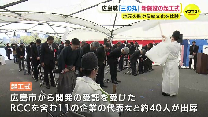 広島城の南側にある「三の丸」で、来年、開業する商業施設の起工式が行われました。広島城三の丸では、歴史を生かしたまちづくりでにぎわいをつくろうと、城の歴史館などの建設が計画されています。