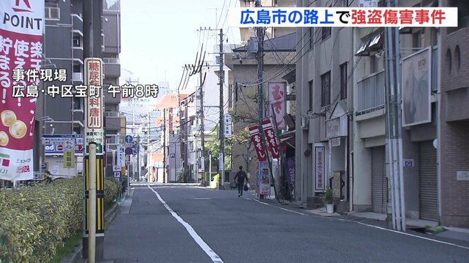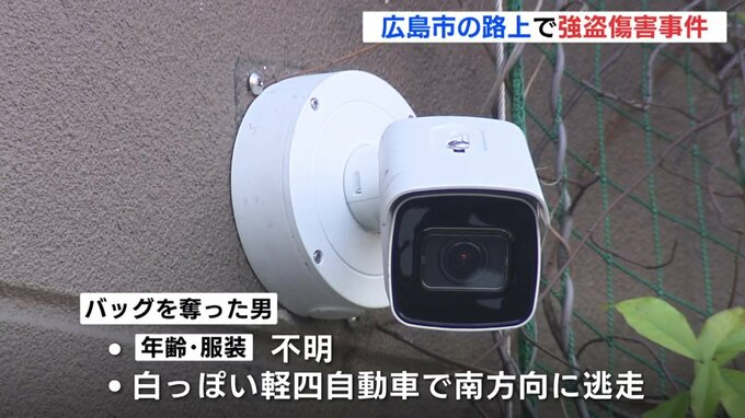 30日未明、広島市の路上で女性が車の窓からバッグを奪われて転倒し、けがをしました。警察は、強盗傷害事件として、逃げた男の行方を追っています。