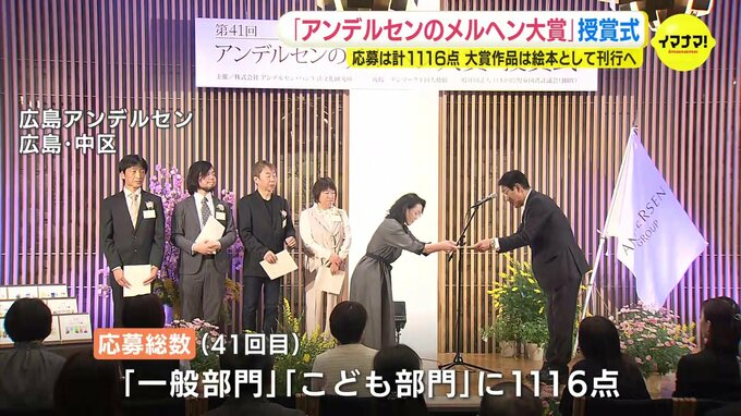 「アンデルセンのメルヘン大賞」授賞式 大賞作品は絵本として刊行予定 2024年4月2日(火) 17:37 国内 優れた童話作品に贈られる「アンデルセンのメルヘン大賞」の授賞式が2日、広島市で開かれました。ことしで41回目になるこの「童話大賞」には一般部門とこども部門、あわせて1116点の応募がありました。一般部門の…