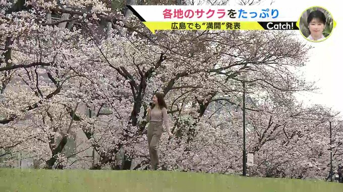 ことし開業したエディオンピースウィング広島のそばでも、桜並木が見ごろを迎えています。