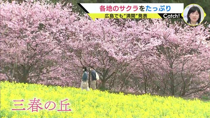 続いては、「さくら祭り」を開催している世羅高原農場(世羅町)です。広さおよそ3ヘクタールの敷地に「ベニシダレ」や「ジンダイアケボノ」などのサクラや春の花々が見ごろとなっています。農園によりますと、ことしは例年より開花が1週間ほど遅れていて、ようやく見ごろとなったそうです。